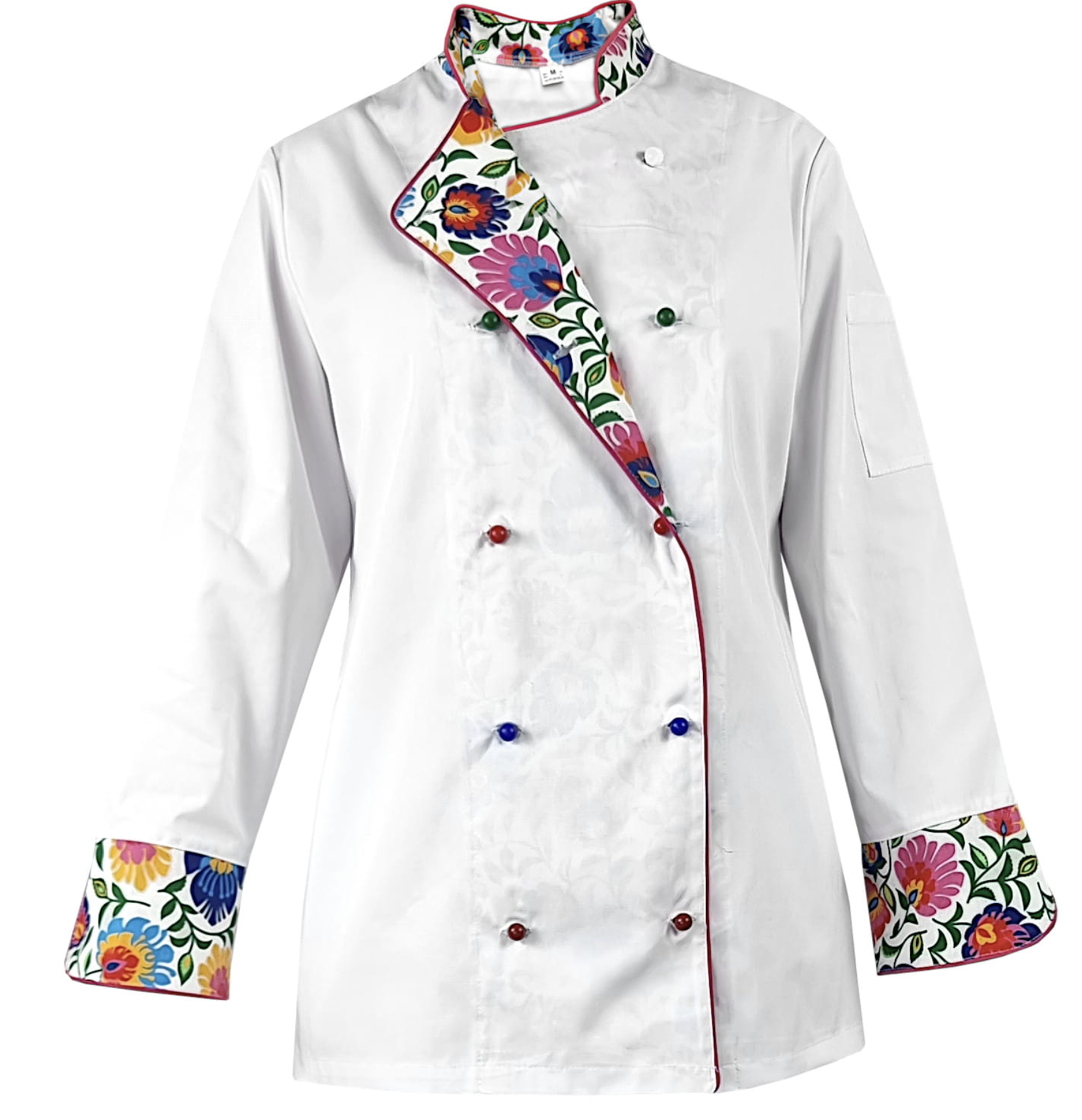 Funkcjonalne detale: Bluza posiada wygodne i szybkie zapięcie na guziki oraz praktyczną kieszonkę na lewym ramieniu, idealną na drobne akcesoria kuchenne.
