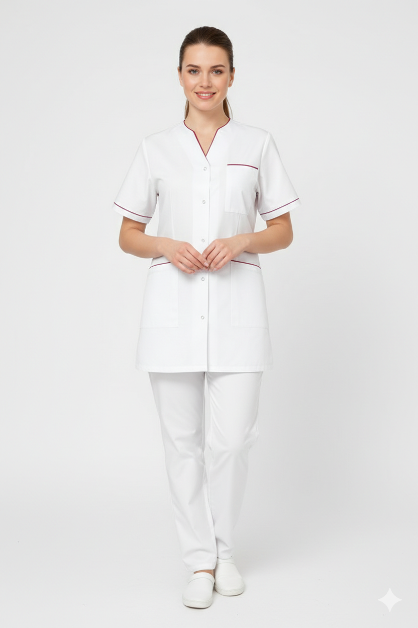 Szukasz odzieży, która podkreśli Twój profesjonalizm, a jednocześnie zapewni pełną swobodę ruchów? Nasz żakiet medyczny to propozycja stworzona dla kobiet pracujących w ochronie zdrowia, farmacji oraz szeroko pojętej branży beauty (gabinety estetyczne, SPA, wellness).